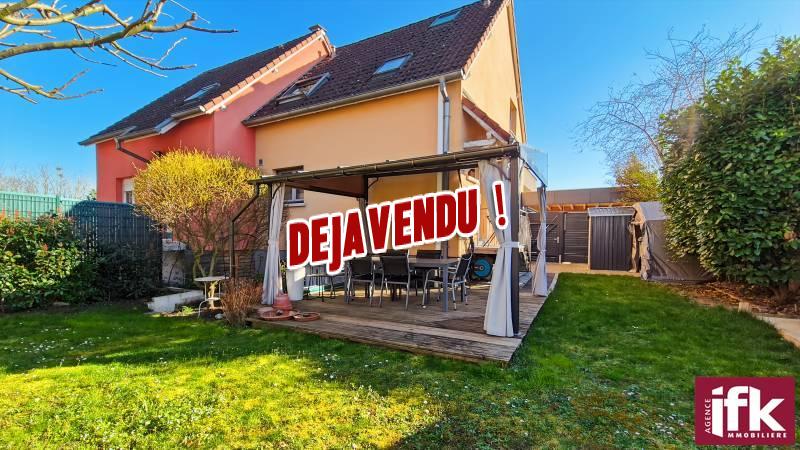 EXCLUSIVITÉ AGENCE IFK : Située à Wolfgantzen, cette maison jumelée de 104 m² habitables et 113 m² au sol vous séduira par ses espaces généreux et son agencement fonctionnel. Idéale pour un couple ou une famille, elle offre une entrée avec placards, un séjour lumineux, une cuisine ouverte avec salle à manger, ainsi que 3 chambres et une salle de bains équipée d’une baignoire et d’une douche.