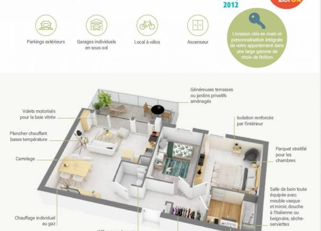 Possibilité suivant conditions de bénéficier du dispositif Location Accession avec Une TVA réduite à 5.5% au lieu de 20% et une exonération de la taxe foncière pendant 15 ans.