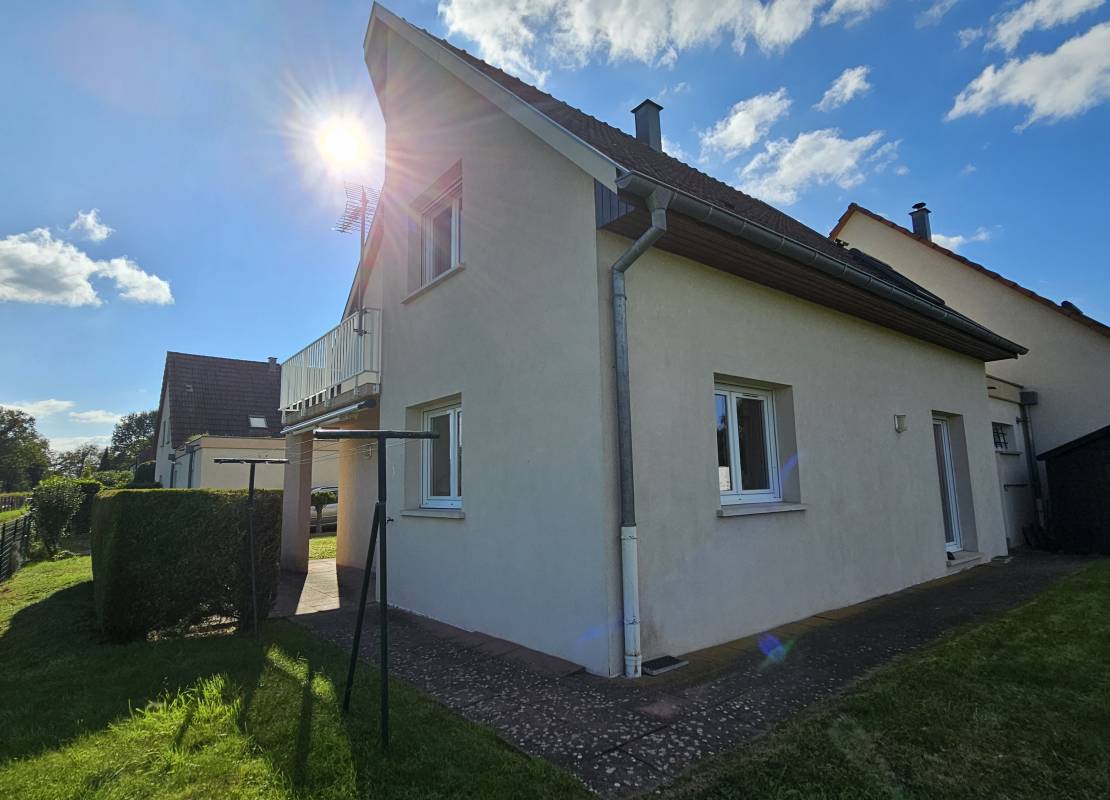 À Wickerschwihr, découvrez en exclusivité cette spacieuse maison accolée par le garage de 6 pièces offrant 124,16 m² habitables (155 m² au sol) bénéficiant d’une aire privative de 3,50 ares.