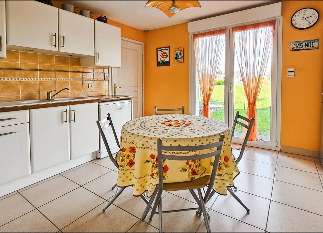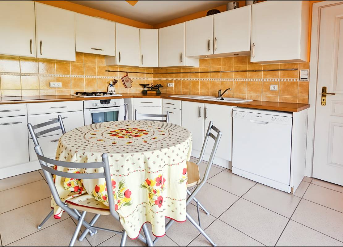• Une cuisine équipée (14m2) fonctionnelle avec buanderie attenante et accès direct au garage (15.50m2)