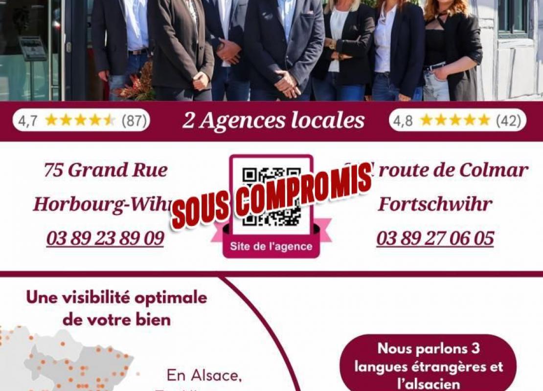 Nous vous proposons à la vente une maison agréable de 112 m² au sol (99 m² de surface de référence), implantée sur un terrain de 5,01 ares dans un quartier calme à Vogelsheim.