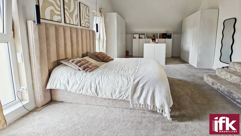 Descriptif: A 10 minutes de Colmar, dans la commune de Fortschwihr , nous proposons à la vente, cette belle maison en ossature bois construite en 2022, contemporaine qui se distingue par ses volumes généreux. D’une surface de 193 m², elle dispose de 6 pièces lumineuses et offre un cadre de vie au calme, tout en restant proche des commodités essentielles.