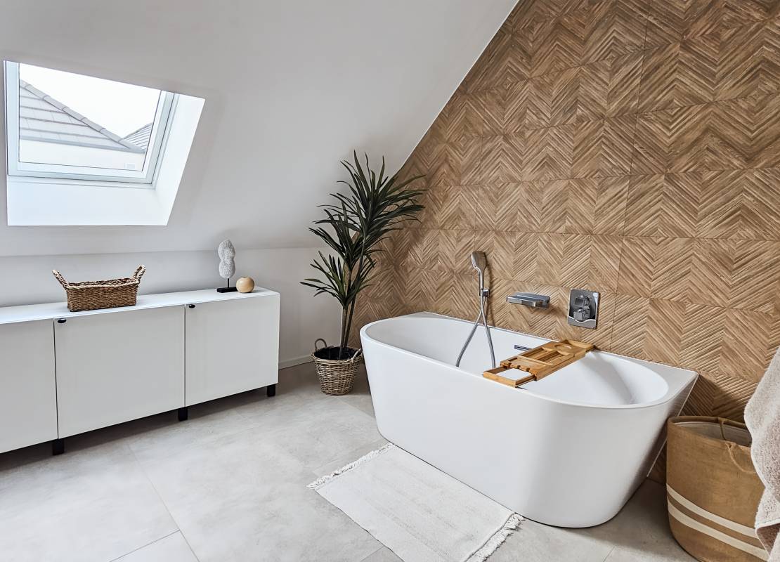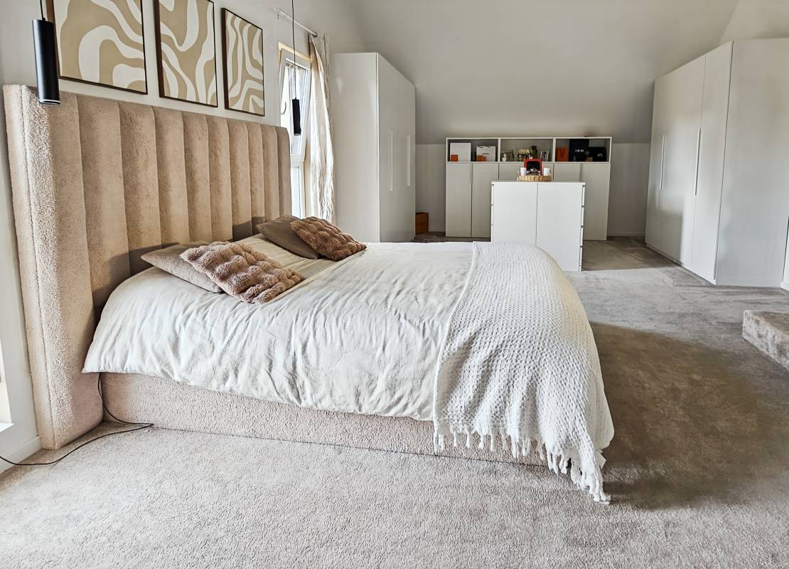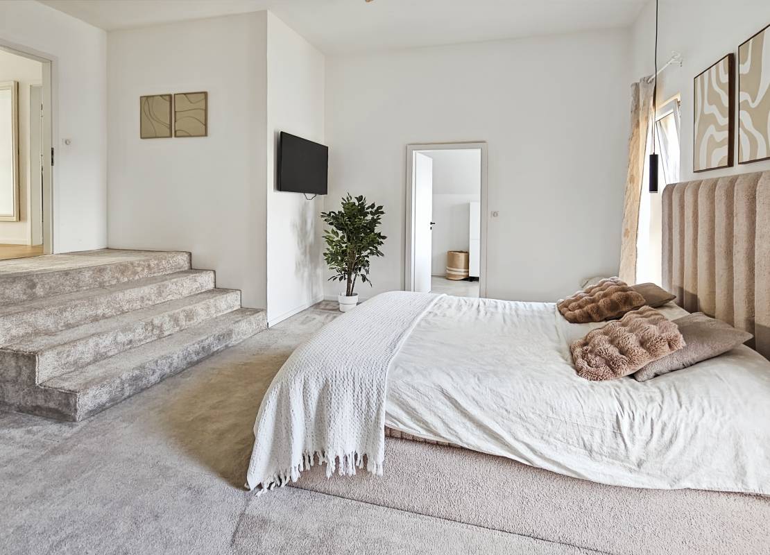 Une chambre est également disponible en plain-pied, avec la possibilité d’y créer une salle d’eau.