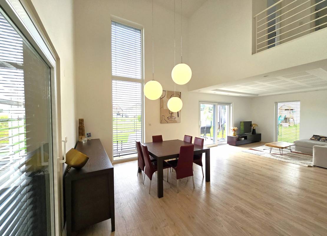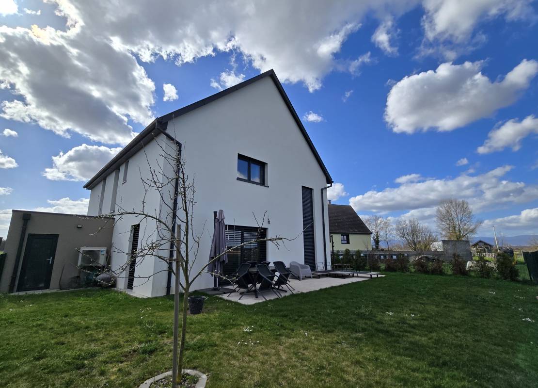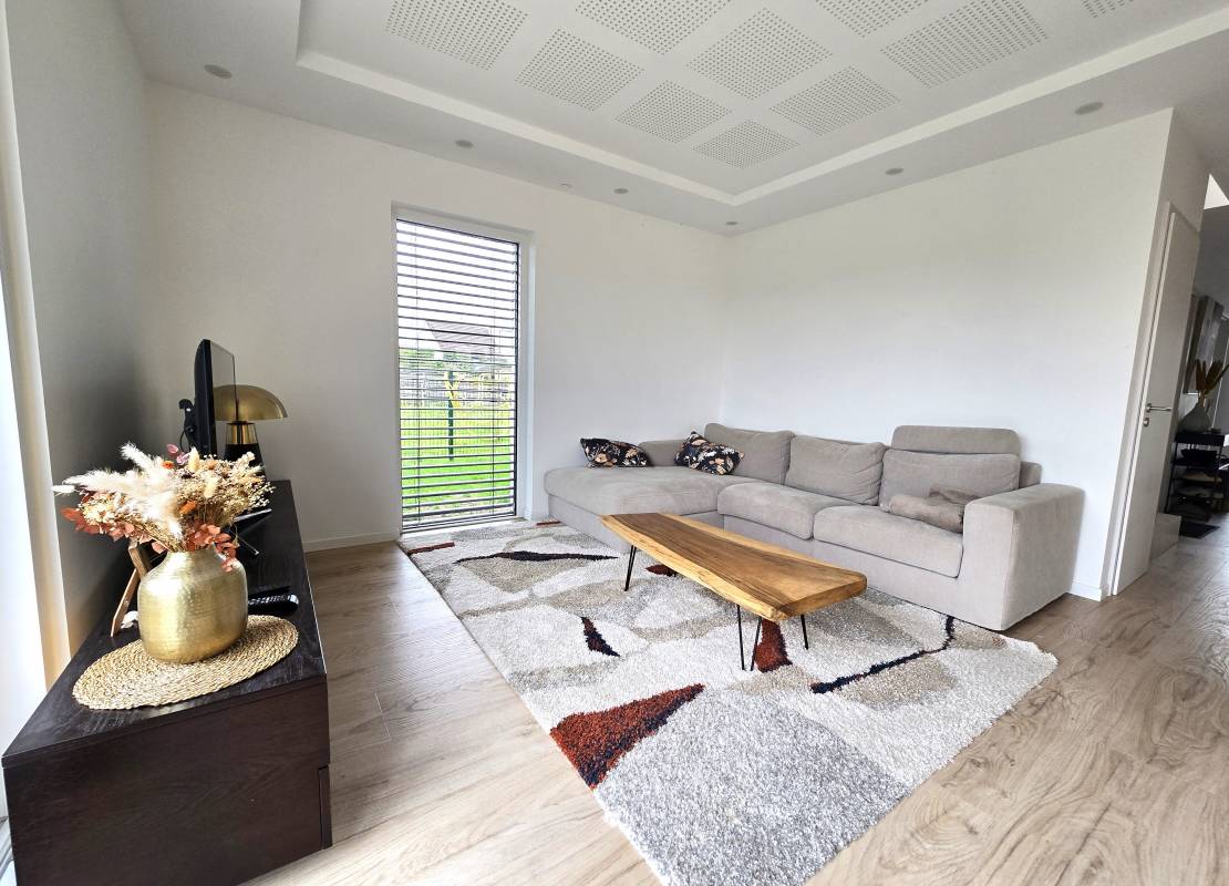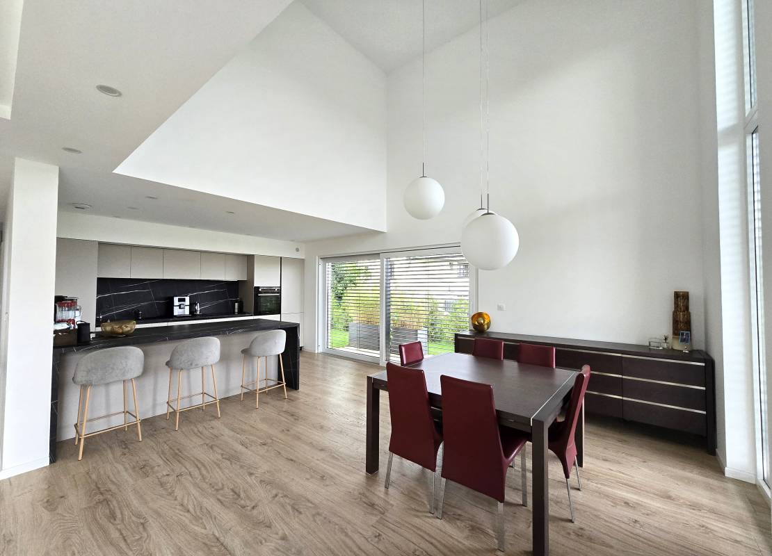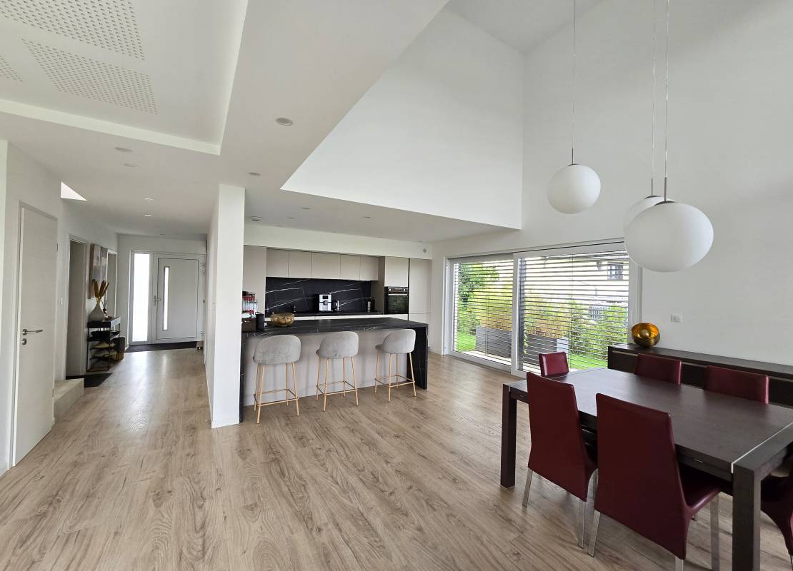 Descriptif: Véritable coup de coeur pour cette splendide maison contemporaine de 140m2 sur un terrain de 11.27 ares, située dans un environnement paisible et verdoyant, dont le confort et la sobriété sauront vous séduire.
