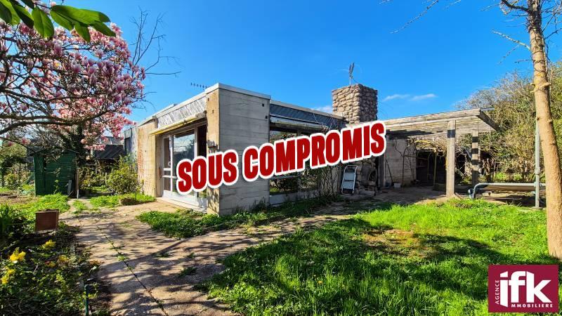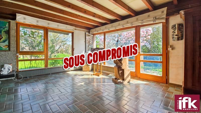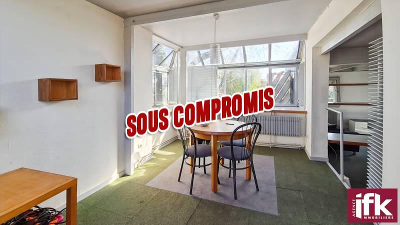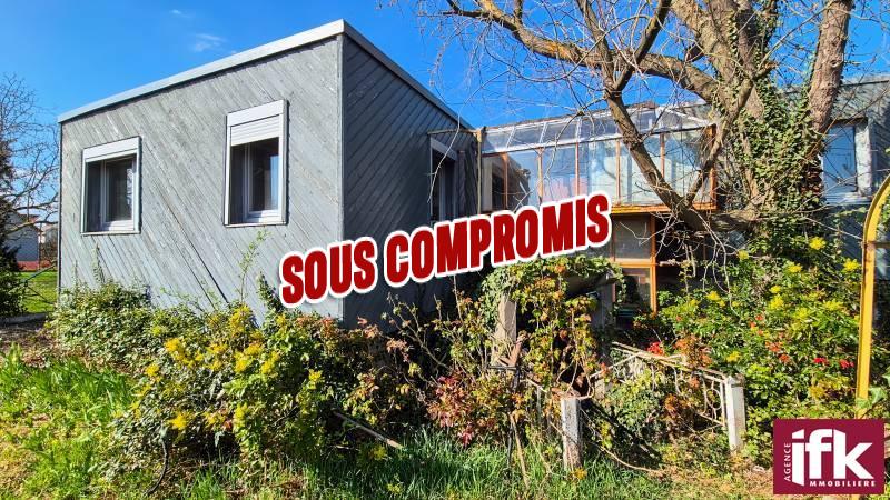 Située dans la commune d'Andolsheim, cette maison d'architecte à toit plat avec studio attenant est un bien rare à la vente.