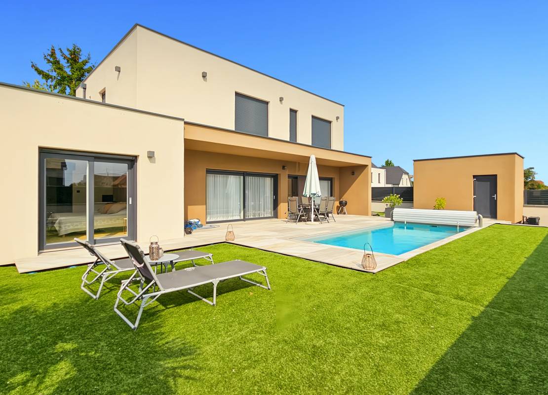 À Urschenheim, découvrez cette maison contemporaine de 173 m², conçue avec un rez-de-chaussée de plain-pied, édifiée en 2022 sur un terrain de 5,49 ares, dans un environnement calme et recherché.