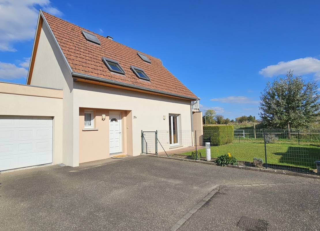 À Wickerschwihr, découvrez en exclusivité cette spacieuse maison accolée par le garage de 6 pièces offrant 124,16 m² habitables (155 m² au sol) bénéficiant d’une aire privative de 3,50 ares.