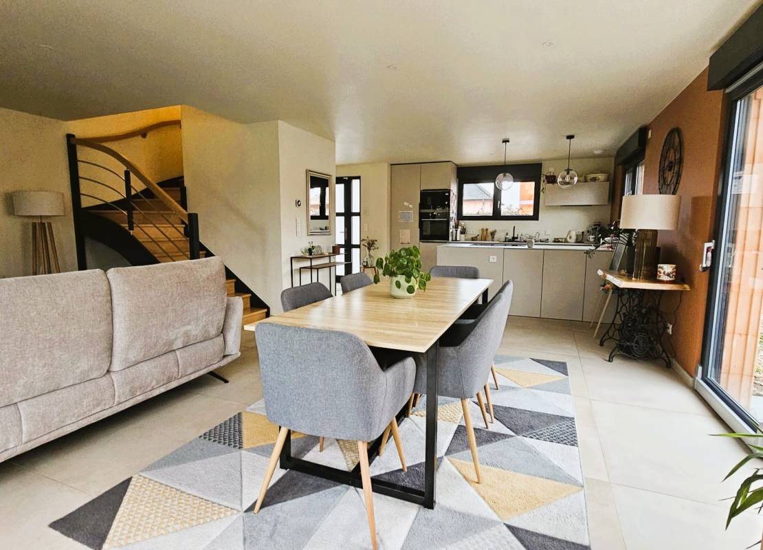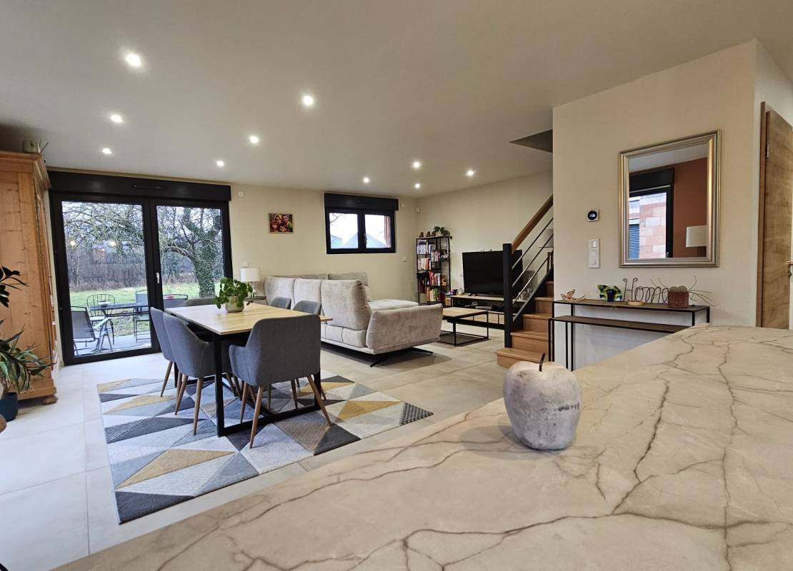 Descriptif: À Jebsheim, dans une commune recherchée pour sa qualité de vie et sa praticité au quotidien, cette maison récente de 2024 offre un cadre de vie confortable et contemporain. Elle développe 110 m² au sol environ (96 m2 surface de référence), implantés sur un terrain de 4,04 ares.