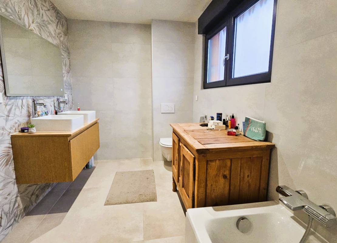 La maison bénéficie d’un chauffage par pompe à chaleur air/eau avec plancher chauffant, offrant un confort thermique optimal.