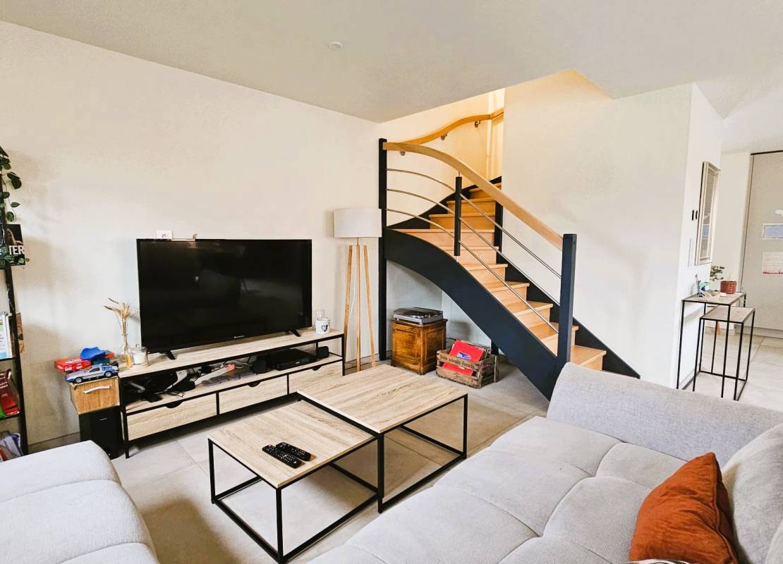 Le rez-de-chaussée s’ouvre sur une pièce de vie lumineuse, où la cuisine équipée s’intègre naturellement au salon-séjour, créant un espace chaleureux et fonctionnel. On y trouve également un cabinet de toilette, ainsi qu’un garage de 32 m², complété par une pièce attenante d’environ 10 m², idéale pour un espace de rangement, un bureau ou une pièce polyvalente.