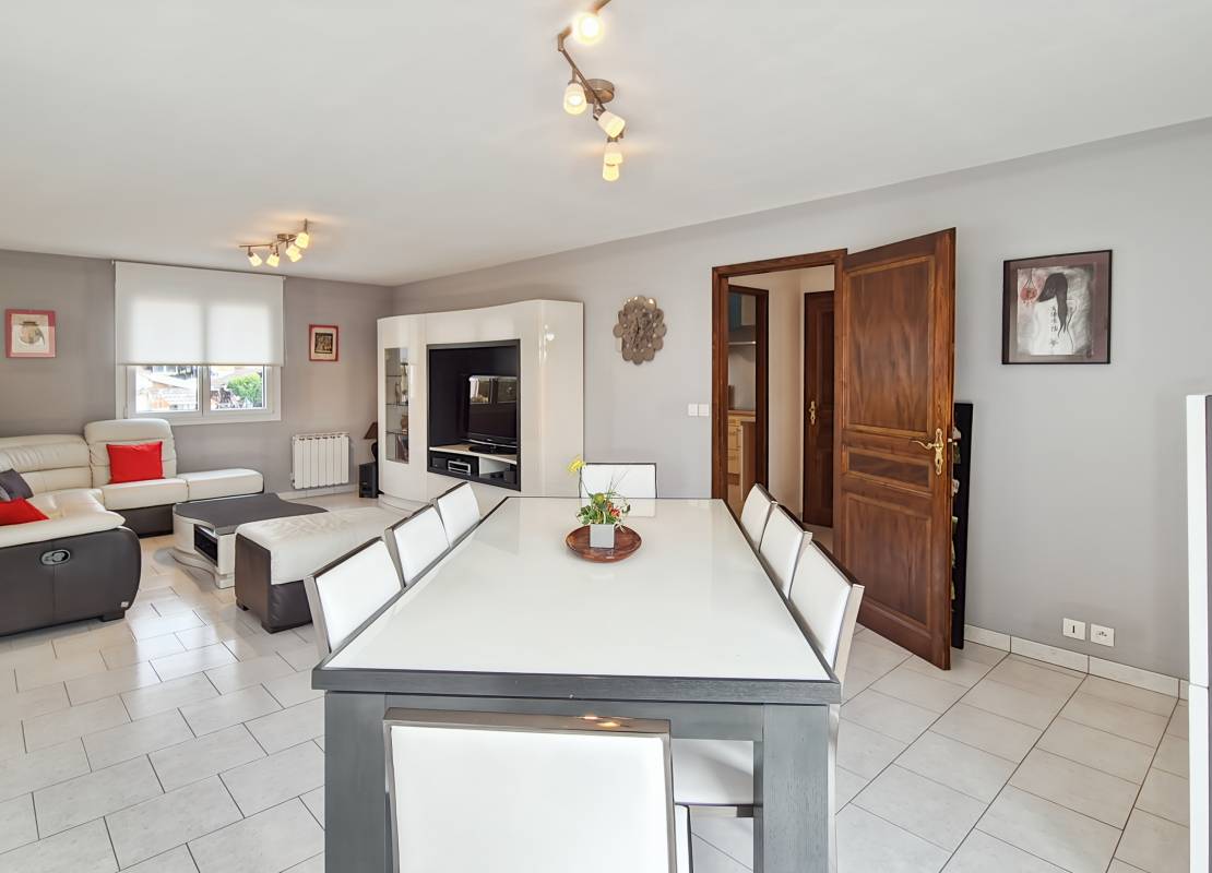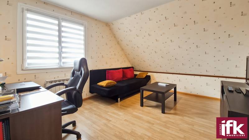 Située dans un environnement agréable, cette maison individuelle parfaitement entretenue est implantée sur un terrain arboré de plus de 11 ares.