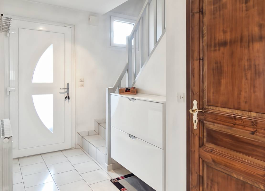 Une entrée, une cuisine équipée et aménagée, un salon-séjour lumineux avec accès direct à la terrasse exposée sud et au jardin, un cabinet de toilette séparé avec lave-mains, ainsi qu’un accès au sous-sol.