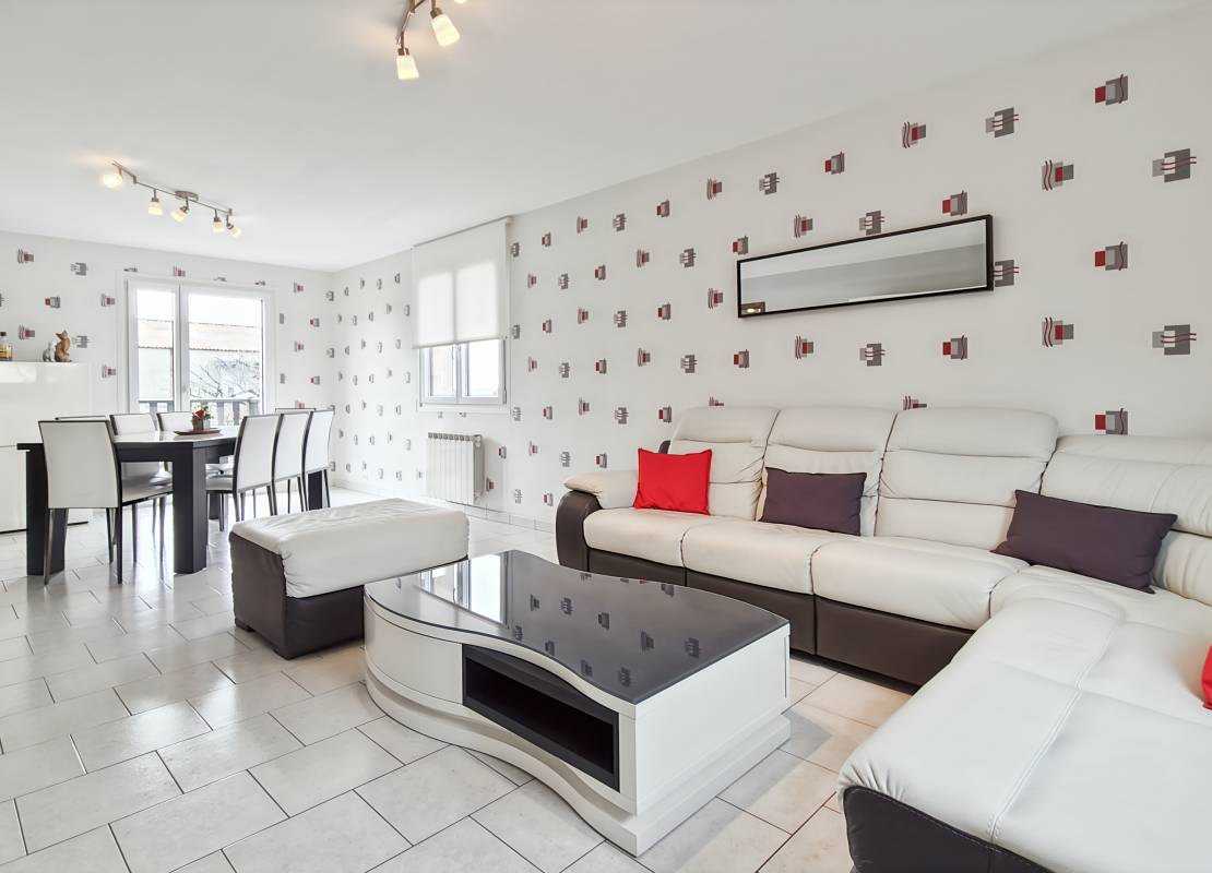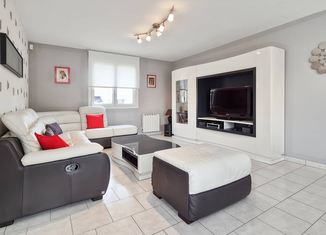 Elle propose 88 m² habitables (101 m² au sol), répartis sur deux niveaux d’habitation, complétés par un sous-sol complet.