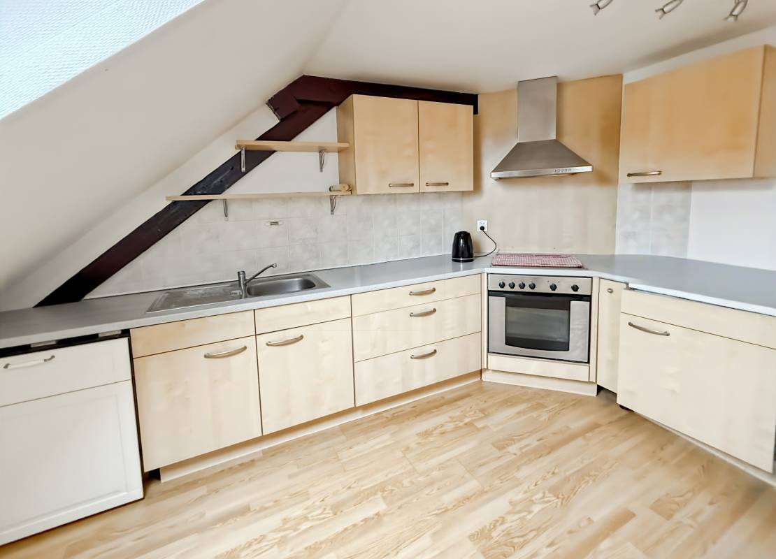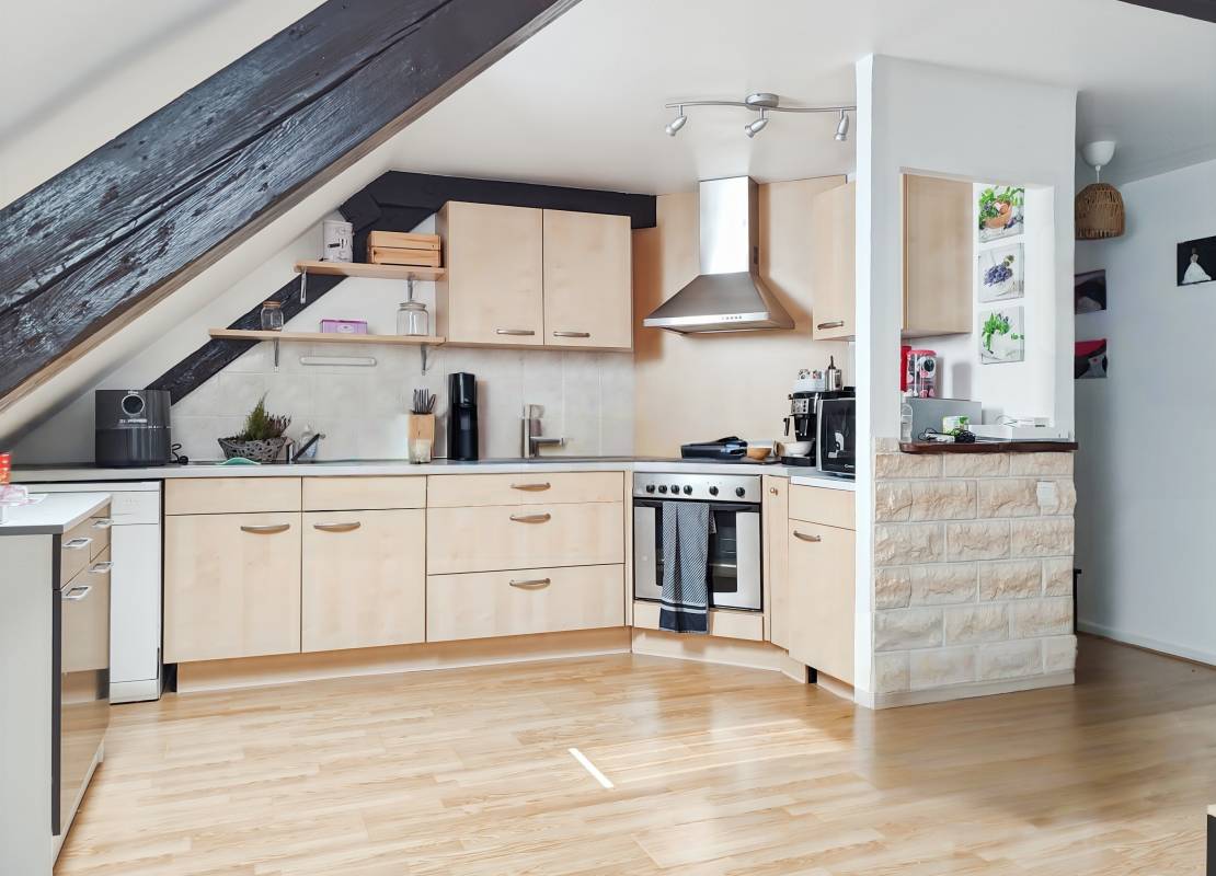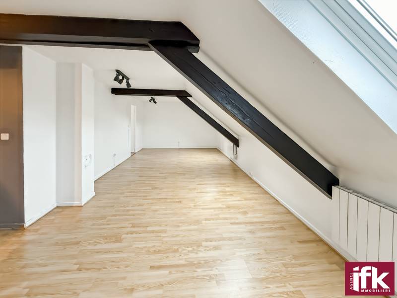 Dans le centre de Soultz , appartement T3 de 50m² situé au 3ème et dernier étage dans les combles d’un immeuble datant de 1870.