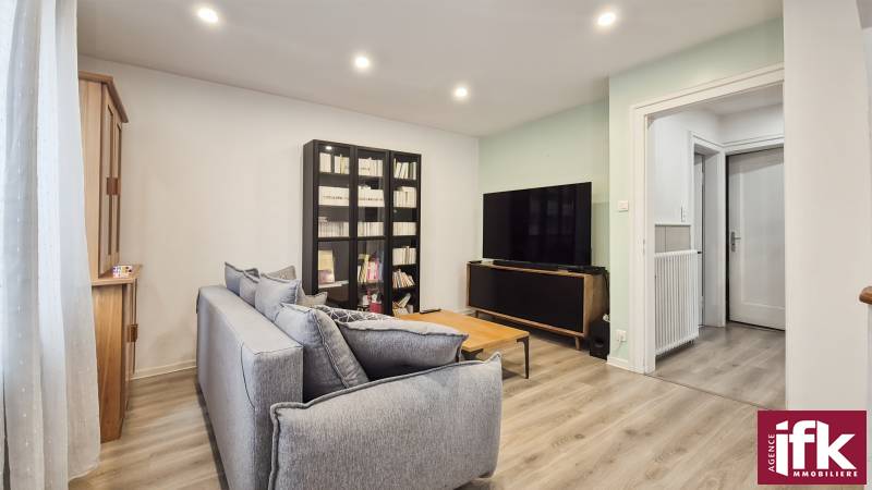 Cette maison typique des années 50 développe 110 m² habitables (131 m² au sol) sur trois niveaux, avec sous-sol complet. Un bien fonctionnel, chaleureux et adapté à une vie de famille.