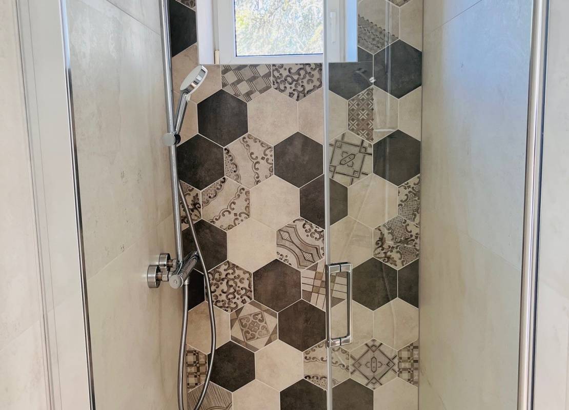 • Salle d’eau avec douche, toilettes et meuble vasque