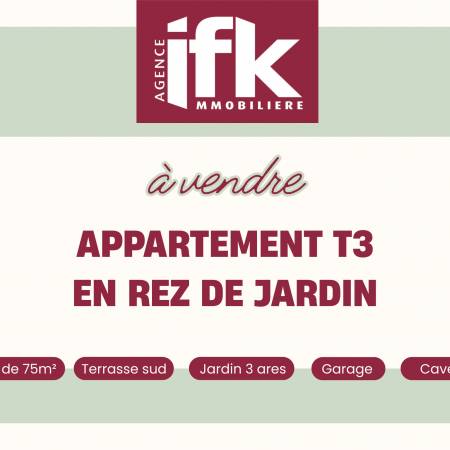 Nous proposons, en exclusivité et hors diffusion, un appartement T3 en rez-de-jardin situé à Horbourg-Wihr.