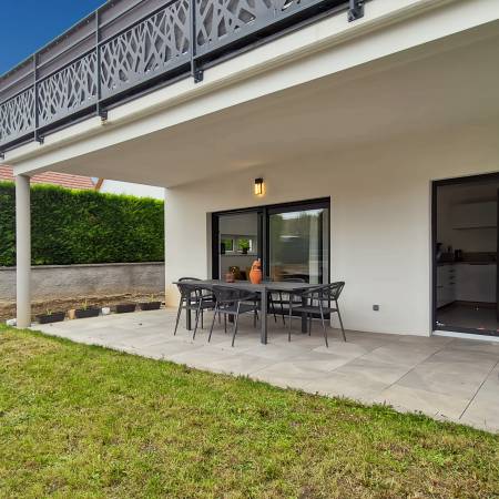 OBERHERGHEIM : Dans une résidence de 15 logements avec ascenseur, nous vendons un appartement F2 neuf de 56,36m2 avec un jardin de 46,17 m2 et une te...